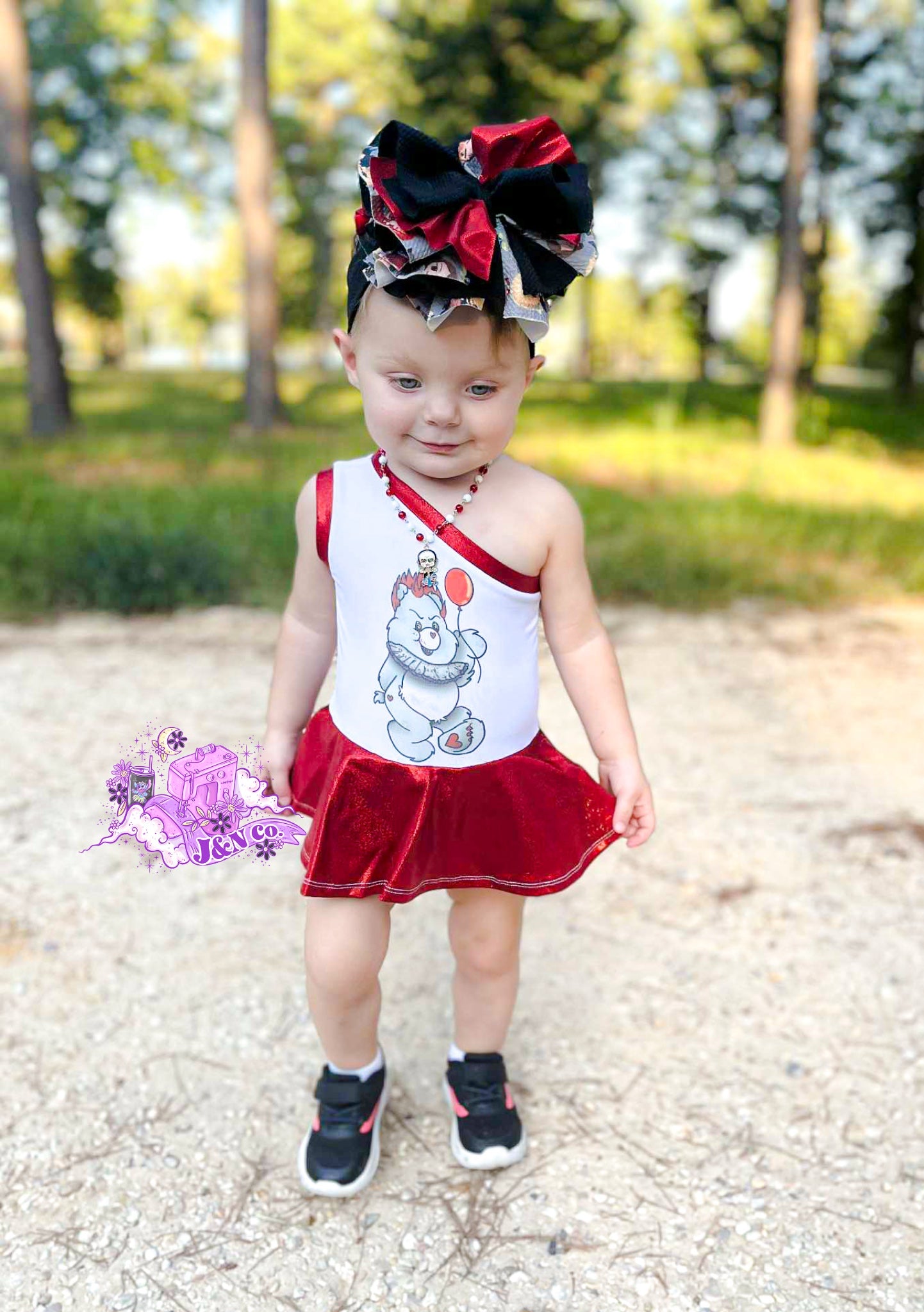 Model 2- One shoulder Leo + skirt with red holo